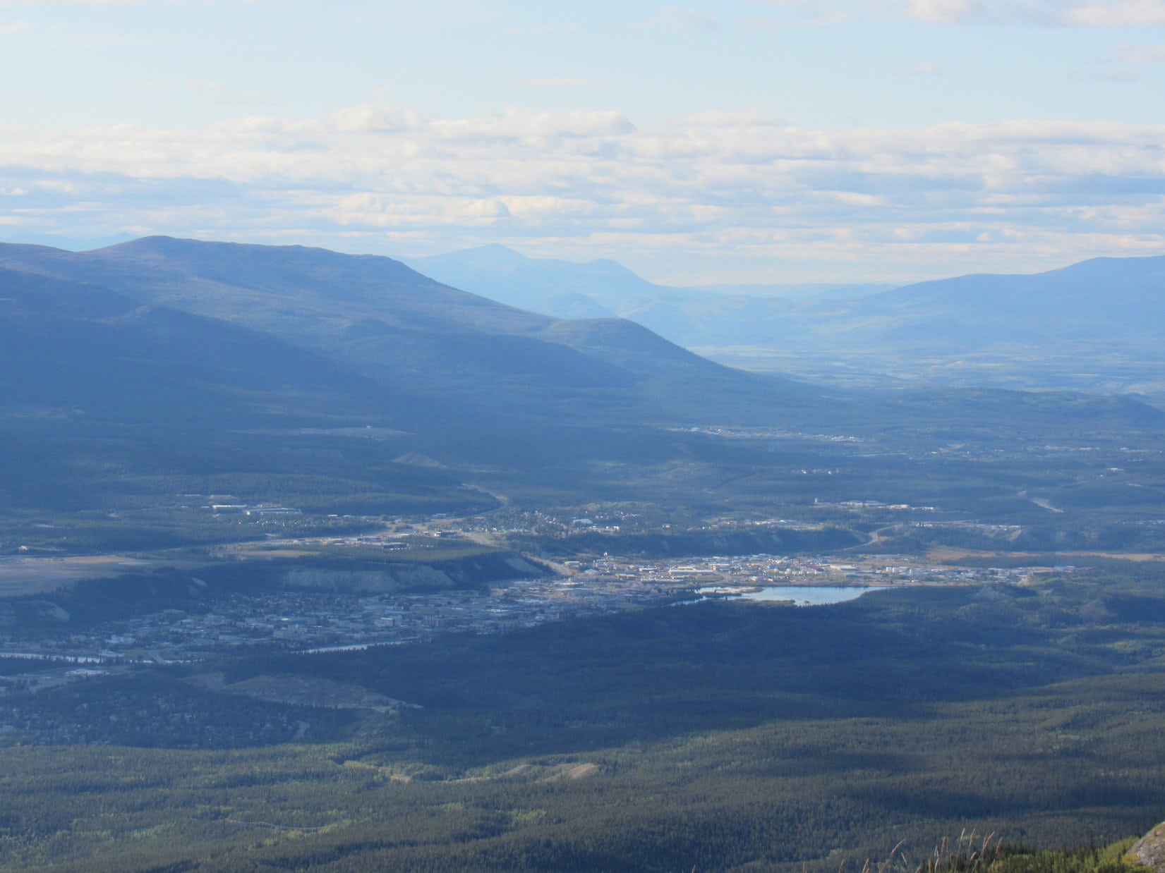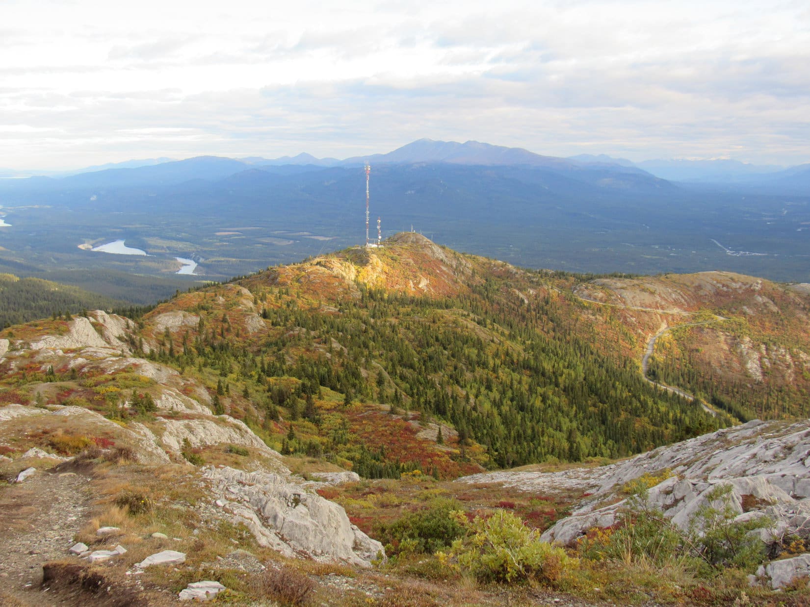 Then it was down the long northernmost W ridge at an ever steepening pace, facing the glorious view of Carcross, Nares and Bennett Lakes, and Mount Gray as the sun slid toward a phalanx of western peaks. Later in the darkening woods, and on down the tight switchbacks, the sense of airiness melted away.
