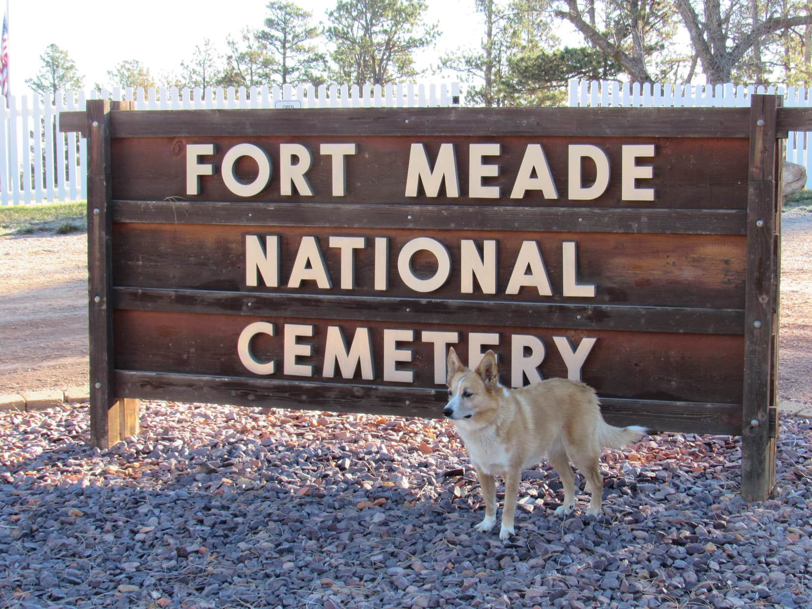 Lupe arrived at Fort Meade National Cemetery the day after Veteran’s Day. The cemetery was officially closed this time of year. Loop wouldn’t have gone in even if it wasn’t. Some might consider an American Dingo prancing around a cemetery disrespectful, even though she wouldn’t have done any harm.