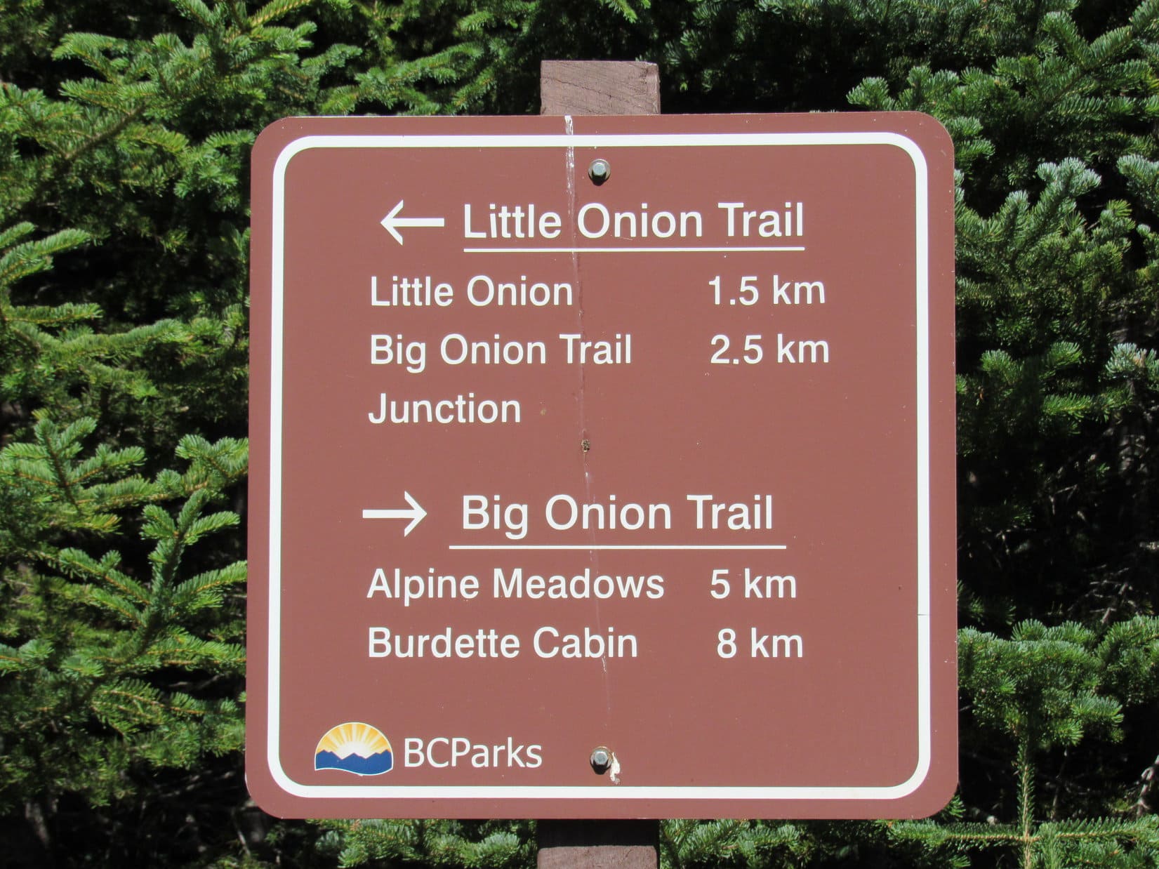 Lupe had barely left the trailhead when a colorful billboard appeared in the forest. Posted by the Smithers Snowmobile Association, it was all about The Big Onion Snowmobile trails.
