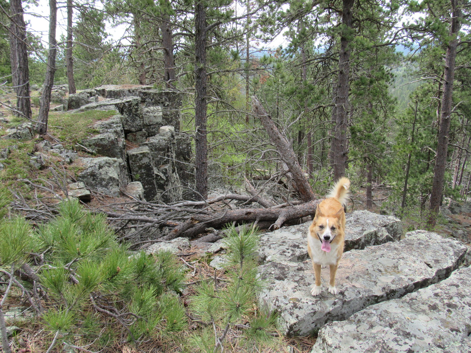 Lupe had been revved up for a couple of days.  SPHP had promised to take her on one of her Black Hills expeditions this morning, yet she almost didn’t get to go.  Lupe was up early, but the morning sky was totally overcast.  Low clouds socked in the nearby hills.  It looked like rain and fog were in Lupe’s immediate future, not fun in the sun.