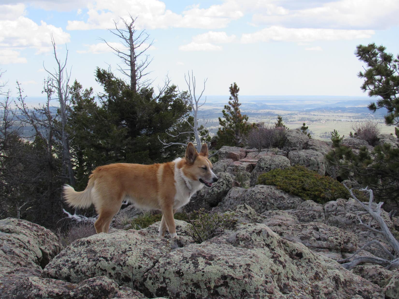 Lupe’s luck was about to change! Five long days of unrelenting Dingo boredom while SPHP helped clean out the house in Laramie, Wyoming were over. Lupe was in the G6, speeding SE on I-80 toward The Summit for her first taste of peakbagging fun on this whole trip. She was finally going to get to play in the mountains, and the excited Carolina Dog could hardly wait.