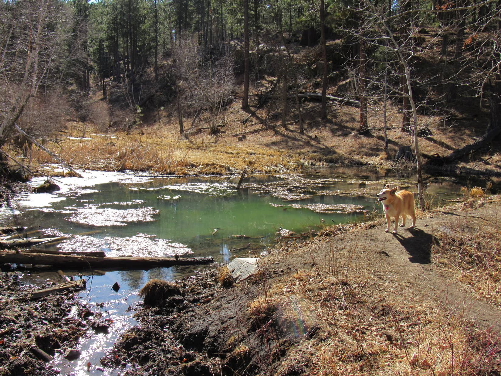 Going clockwise around the loop, everyone made it to a slimy gray-green pond on a tiny tributary of Bitter Creek.