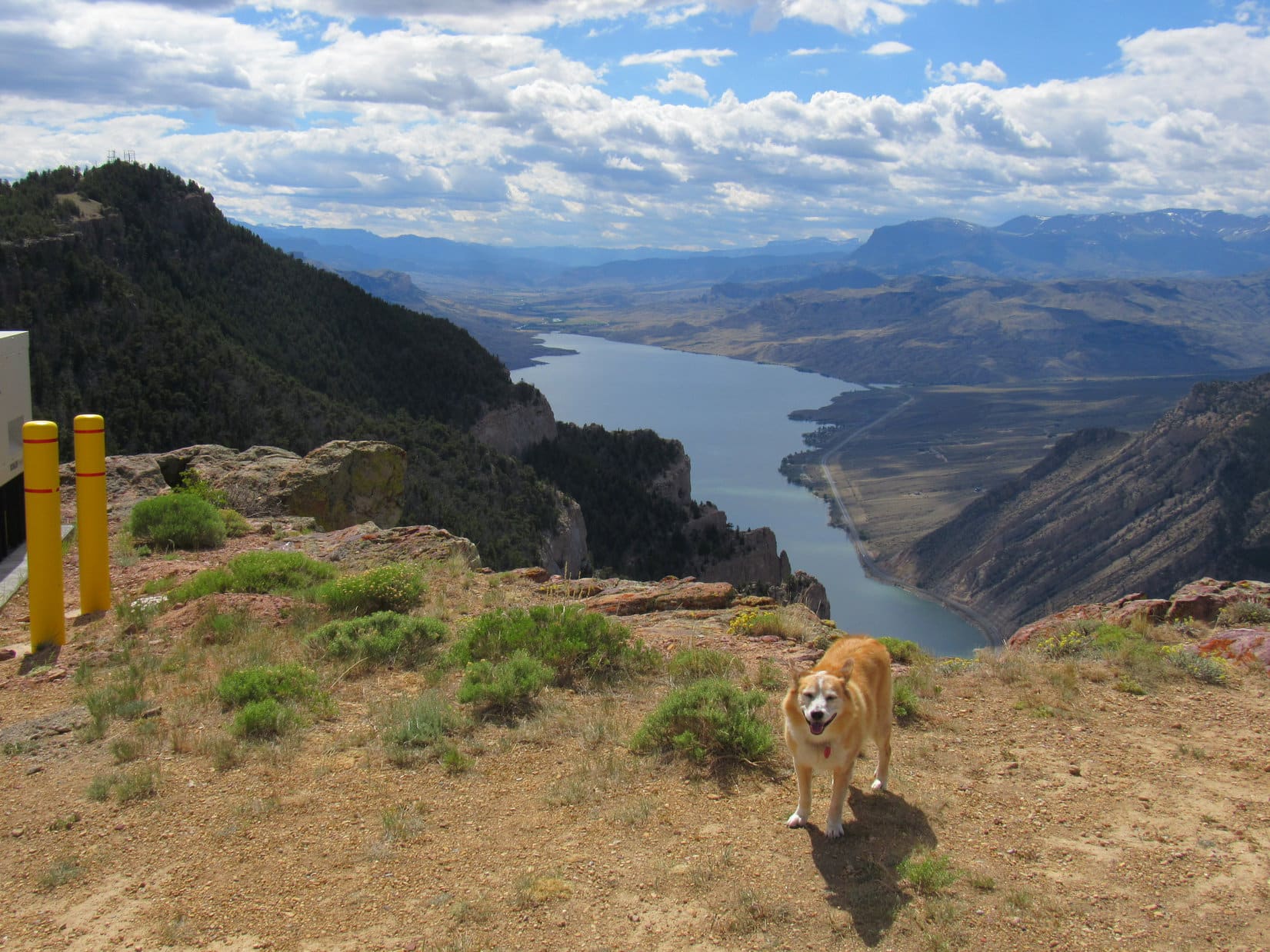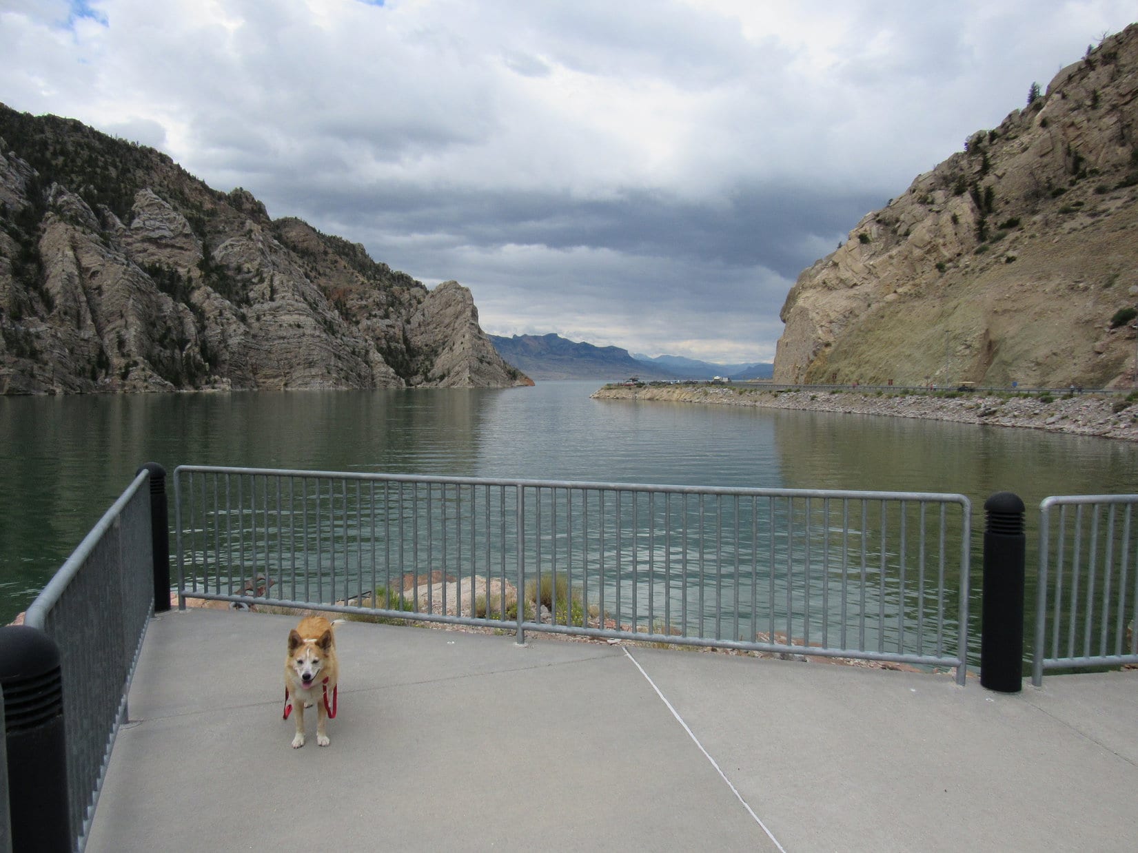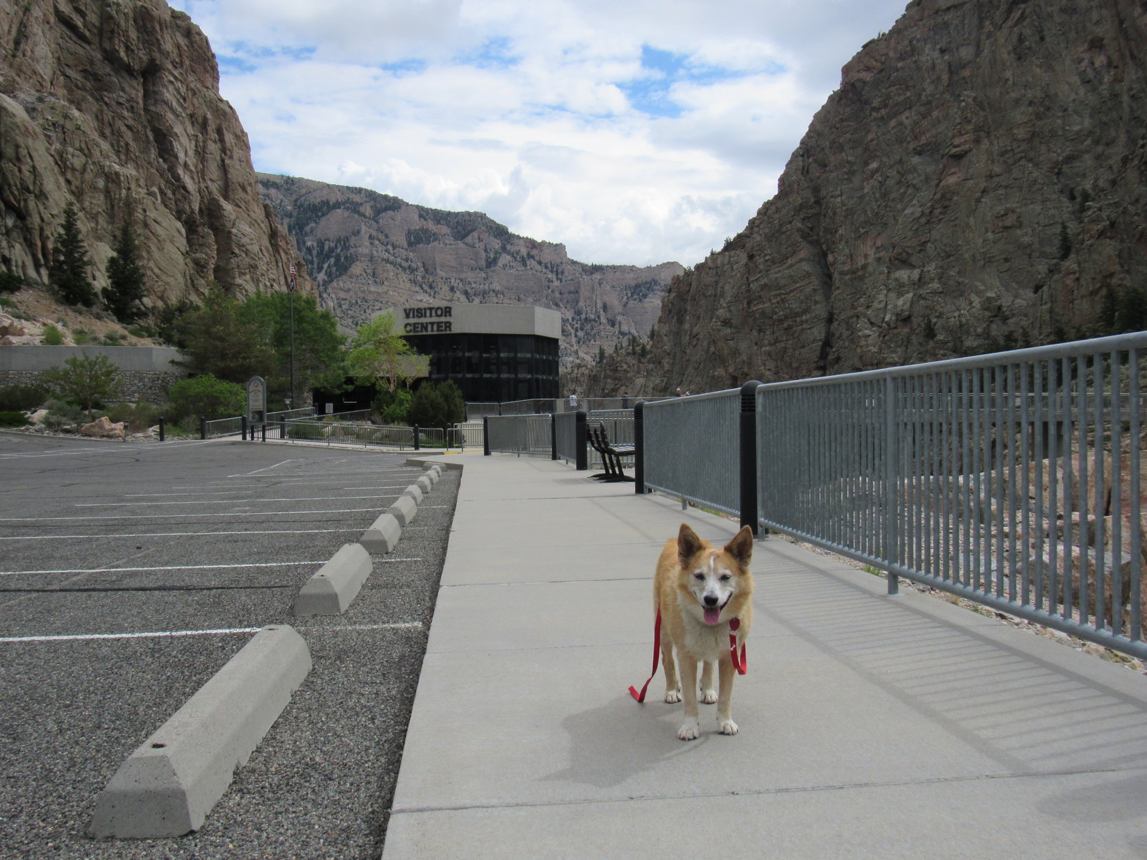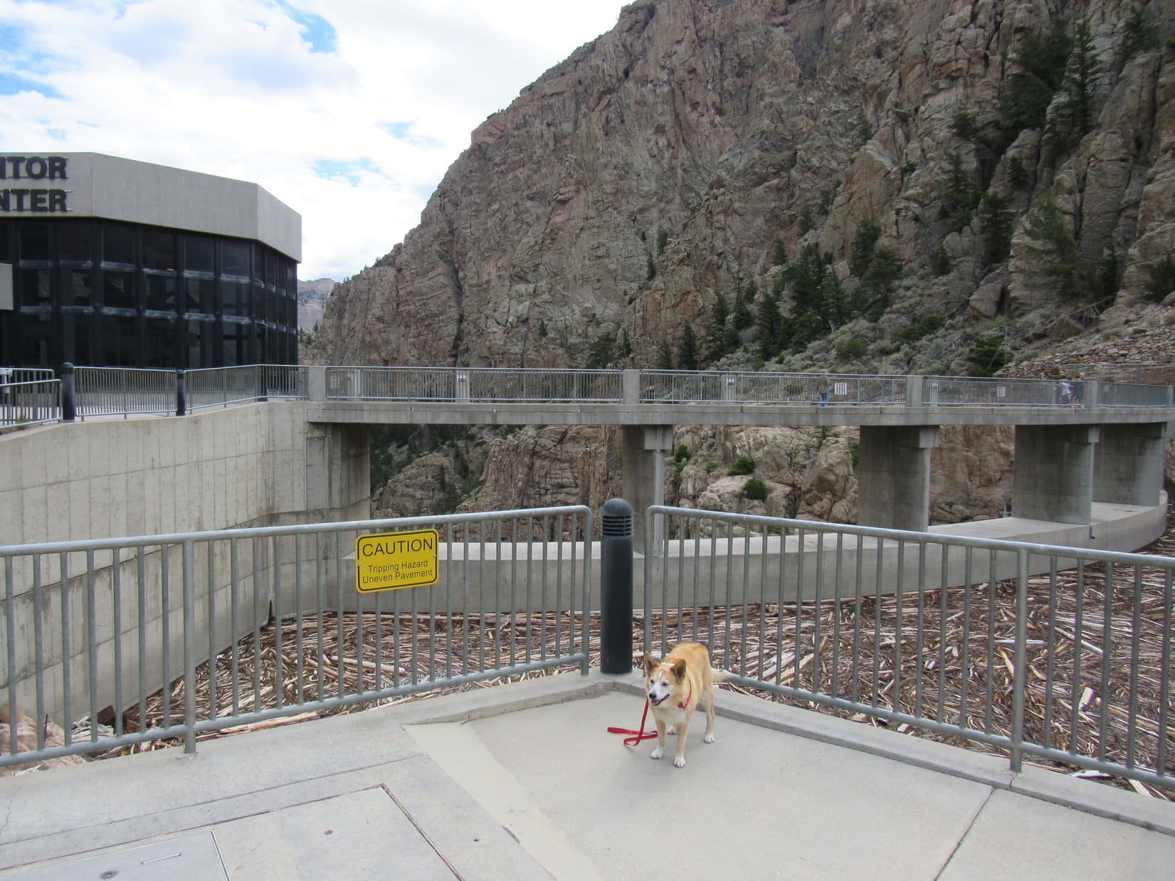 The visitor center was not Dingo friendly, but Lupe was free to look around outside. A walkway over the dam, which was right next to the visitor center, provided a stunning view of the Shoshone River canyon.