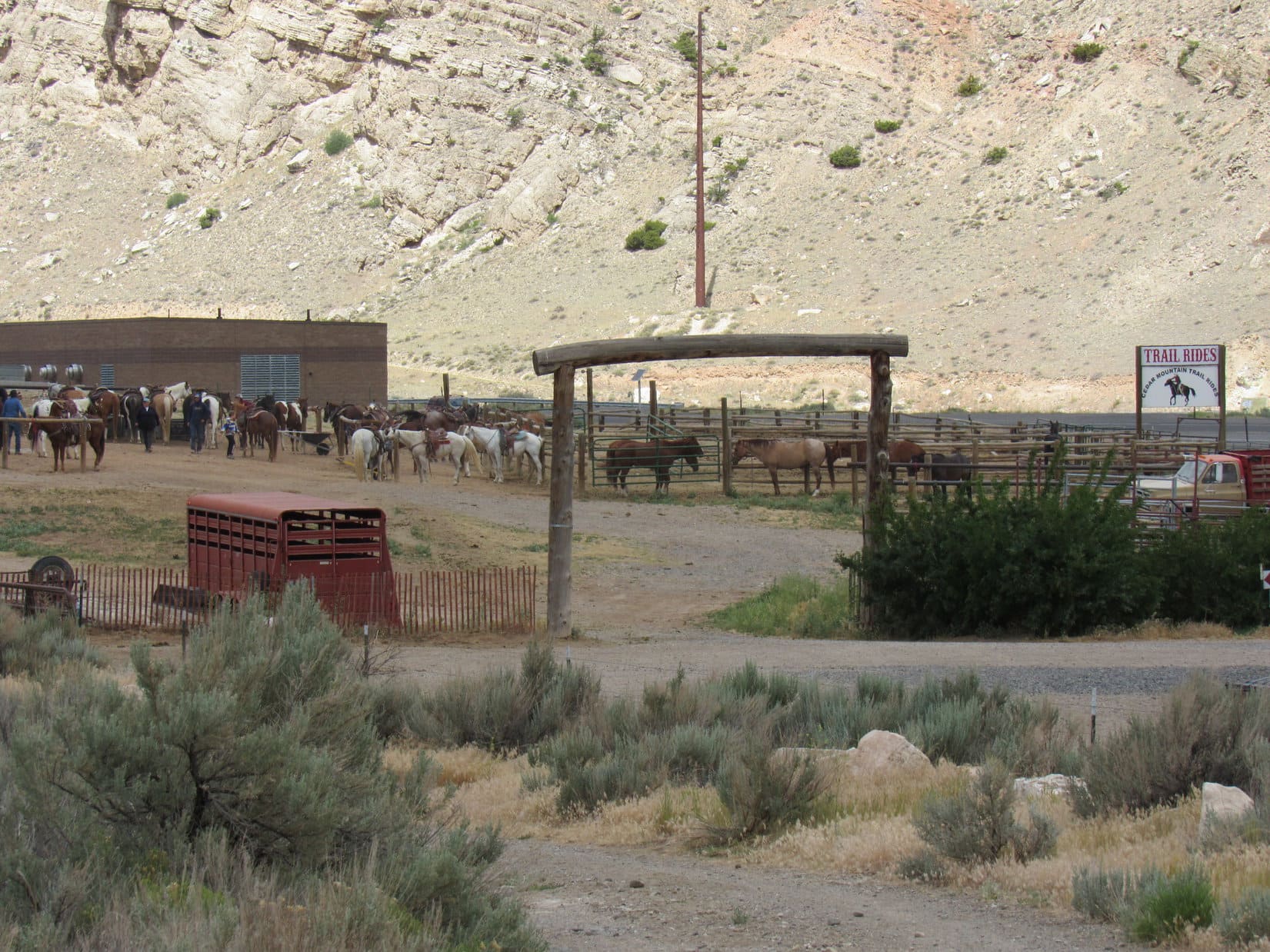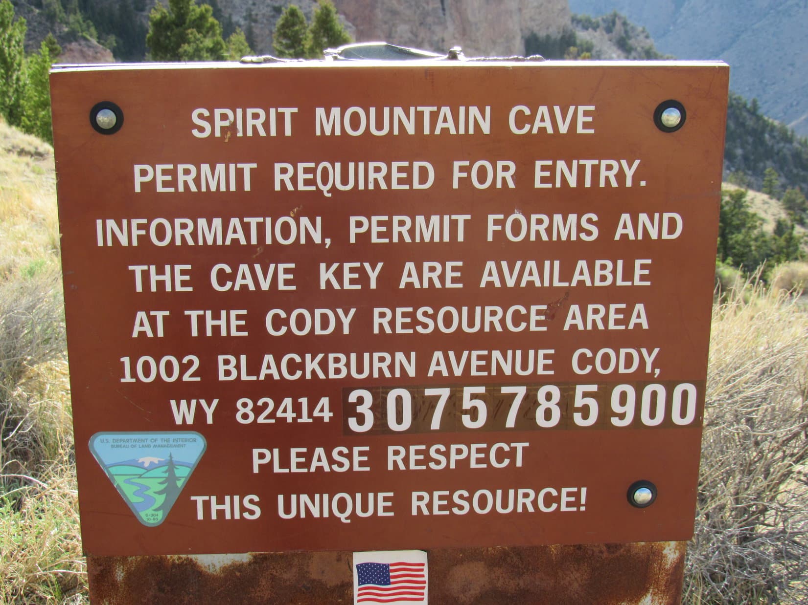 Driving E back down the Shoshone River canyon into Cody, SPHP missed the sign for Spirit Mountain Road, mostly likely because there wasn’t one. The turn eventually proved to be about 2 miles W of Walmart, on the L (S) from that direction, just before Cedar Mountain Trail Rides. SPHP parked the RAV4 at a large trailhead 150 feet from the highway.