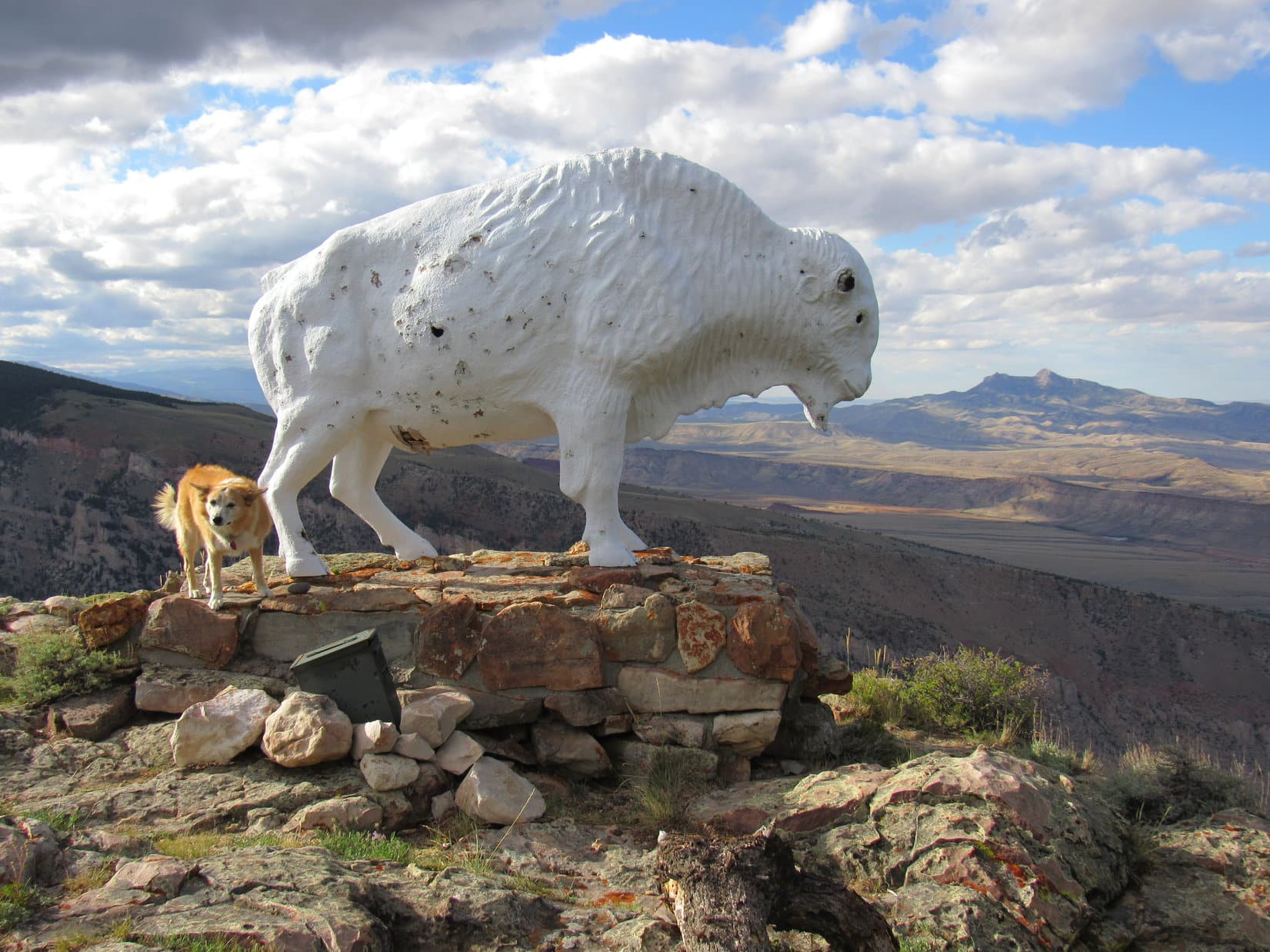 Awe and a touch of trepidation soon turned to disappointment when the buffalo did nothing, and a cautious sniff test subsequently revealed it to be a mere statue, not the real thing. In fact, the poor buffalo was a little worse for the wear, missing its horns and in need of fresh paint. Still it was a pretty cool buffalo, and certainly enjoyed a magnificent view.