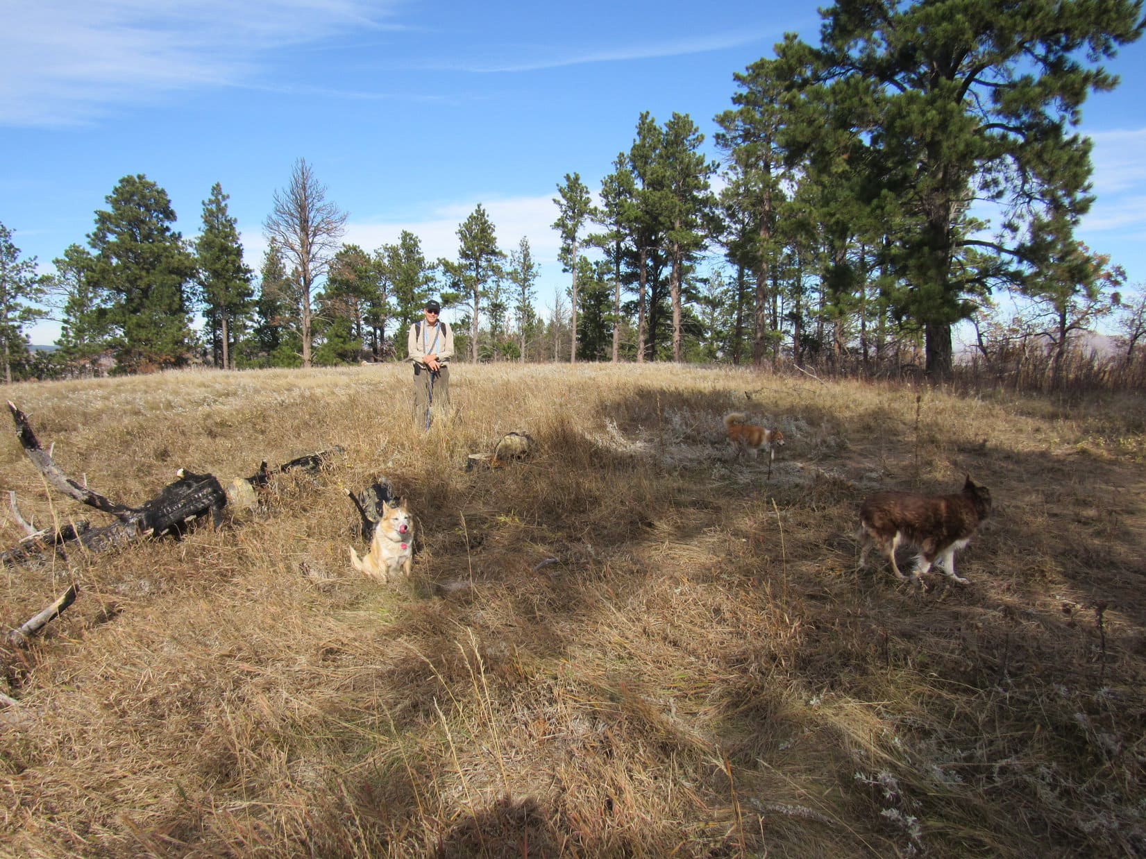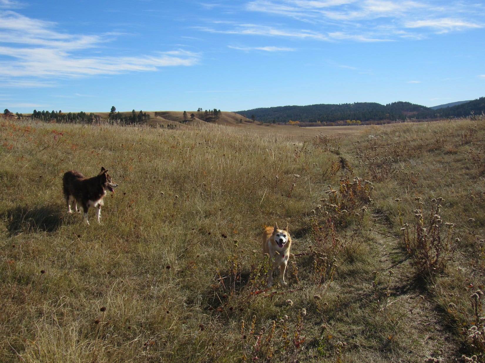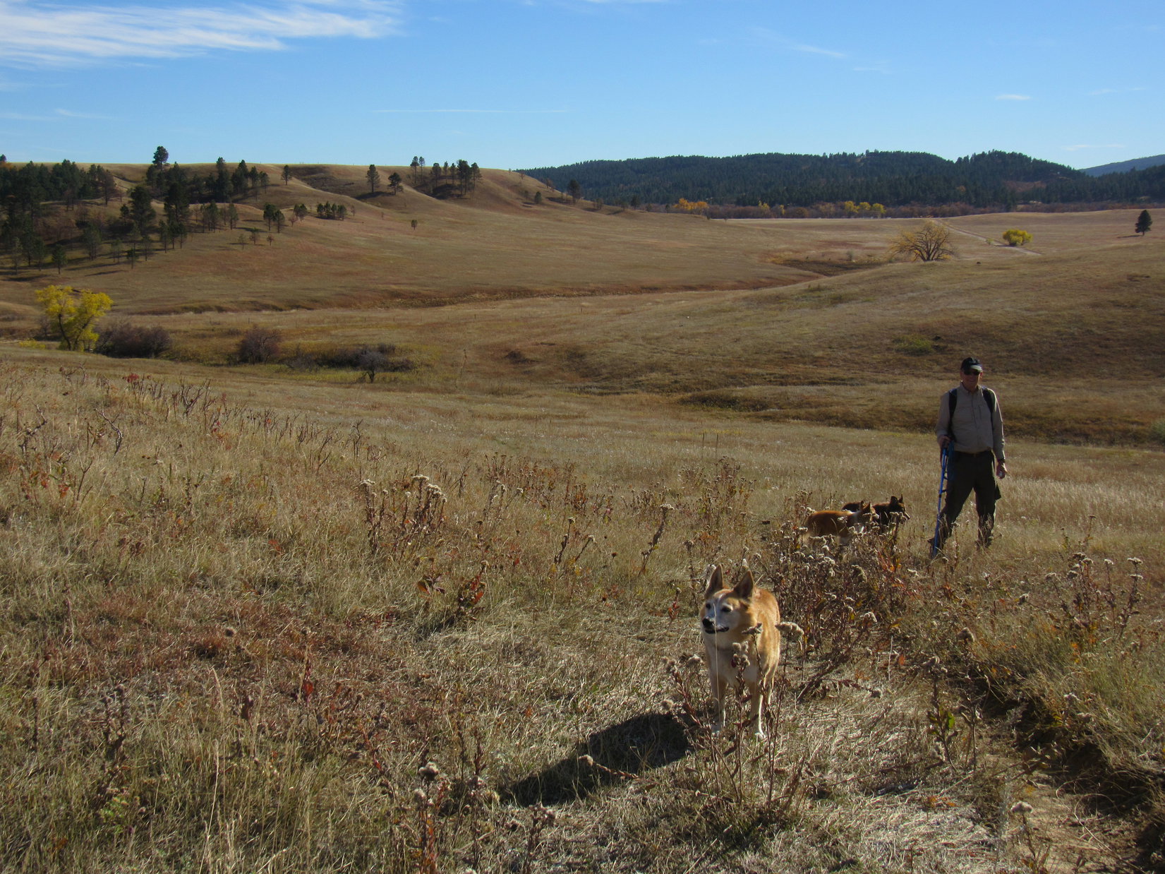 Loop and Dusty, together again in the Black Hills!Loopster in the lead.Getting close to the top of the ridge. Photo looks ESE.