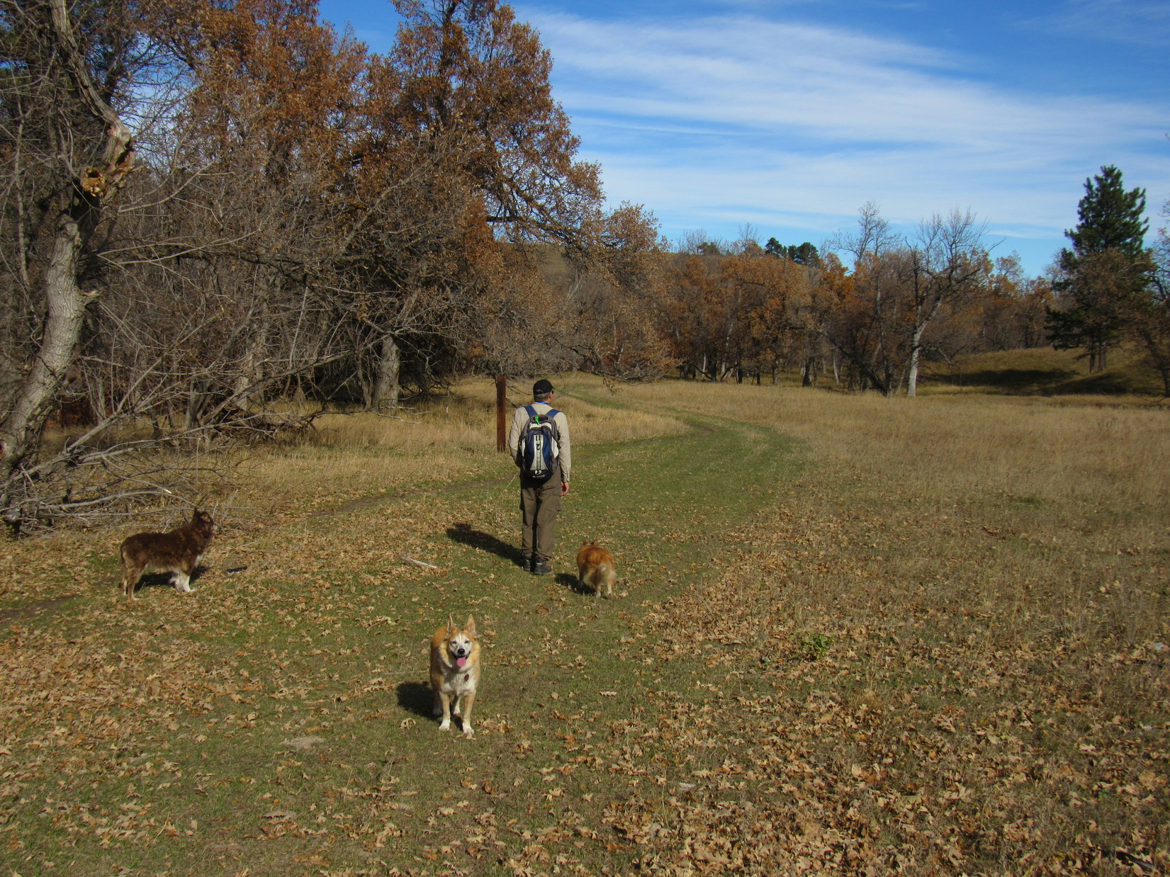 10-29-21, Centennial Trail No. 89, Alkali Creek trailhead – Everyone was excited! Cousin Laddie was about to get his first introduction to the Black Hills. Cousin Dusty was 15 now, so the hike had to be a relatively easy one. The stretch of Centennial Trail No. 89 N of the Alkali Creek trailhead to a ridge overlooking the old 7th cavalry post at Fort Meade was one of Uncle Joe’s favorites, and would do nicely. He always called it the Ponderosa hike.