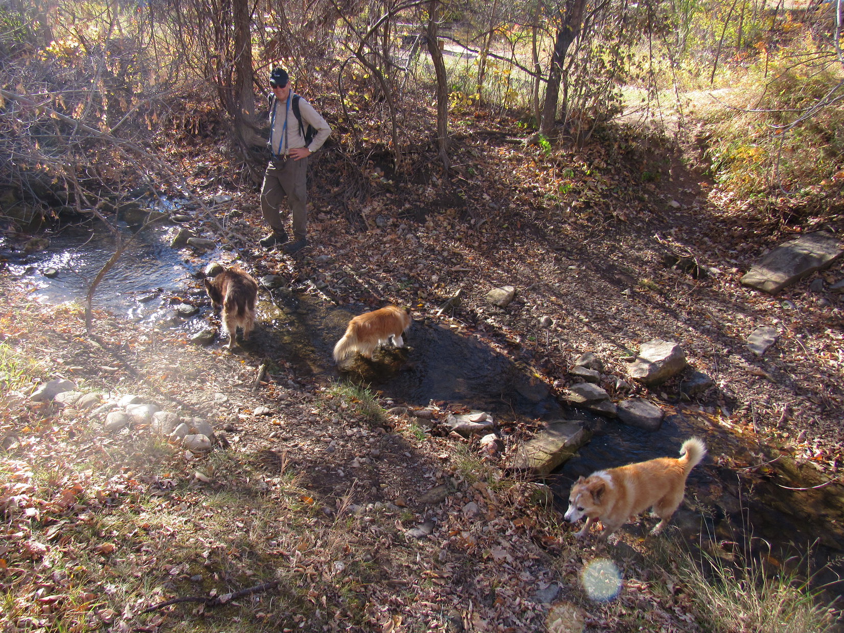 Relief from the heat at Alkali Creek.Cousin Dusty cooling off in Alkali Creek.