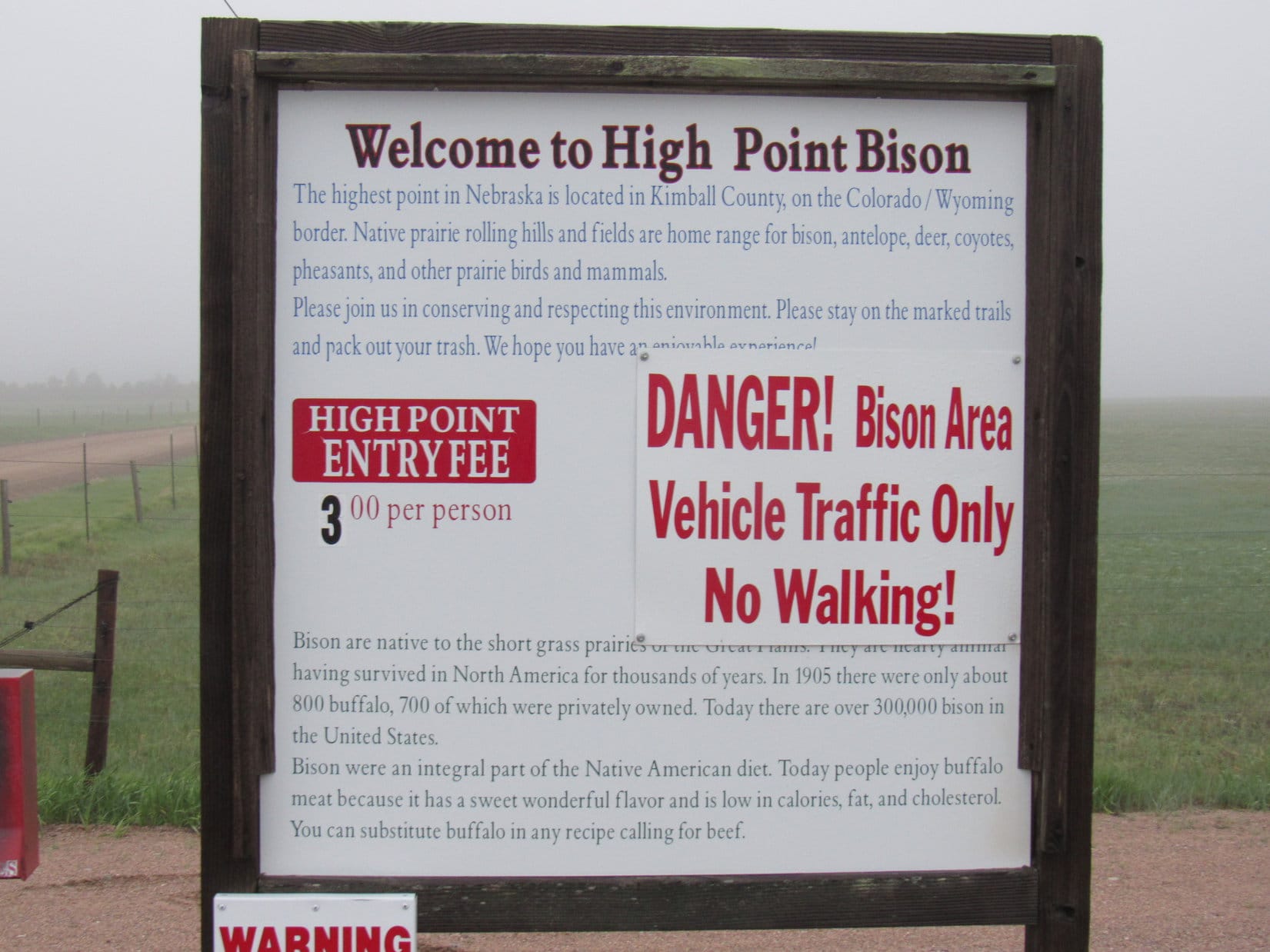At the entrance to High Point Bison, aka Panorama Point. Photo looks S.Public access rules set by the landowners.