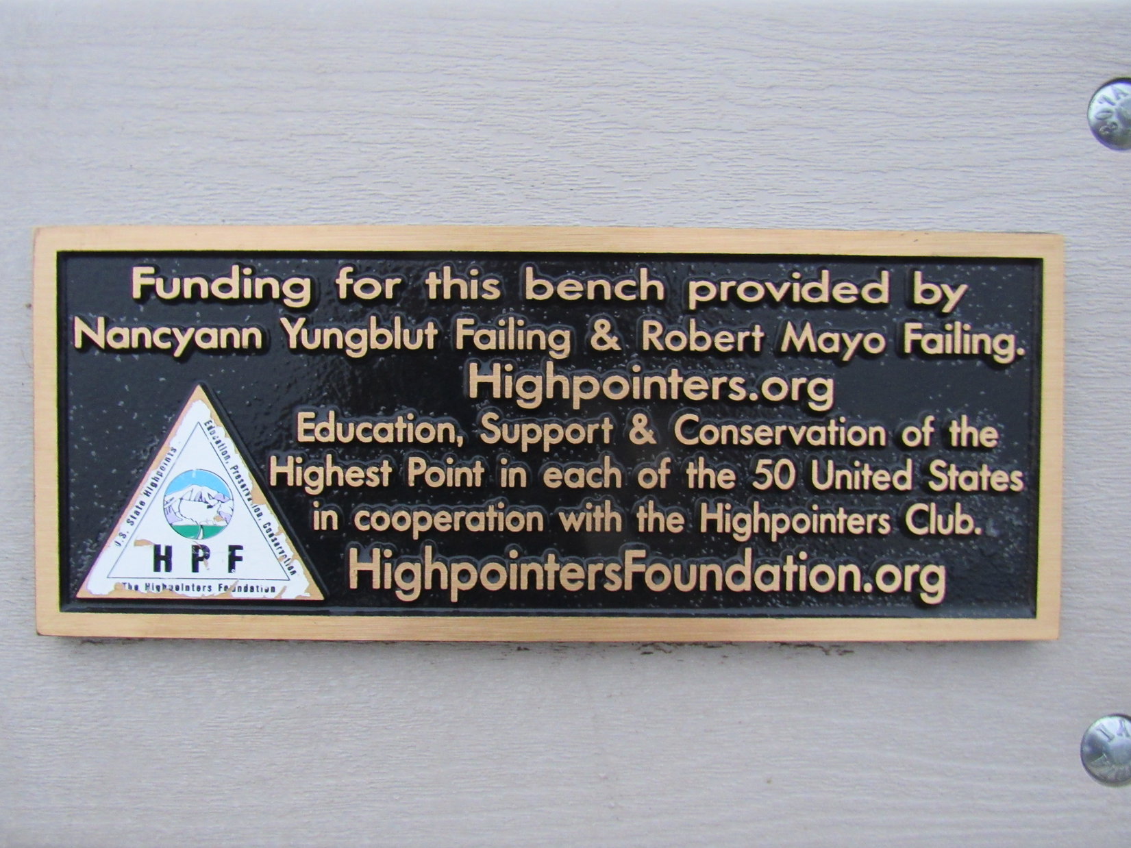 Standing on the Highpointers bench, since it was rather wet for sitting on.History-related plaque attached to the bench.