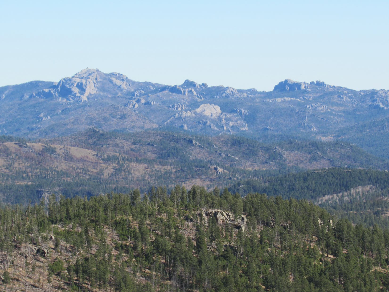 Getting to be a beautiful day! Partly cloudy with blue sky and sunshine. As everyone relaxed, the big view was toward the SE, where several of the highest peaks in South Dakota were visible on the horizon.